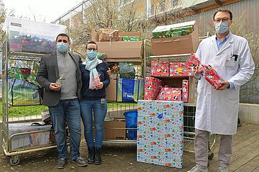 Jedes Jahr sind die strahlenden Kinderaugen für Jeannine Rauch, Mitarbeiterin am Universitätsklinikum Erlangen, und ihren Lebensgefährten Serok Kilic der schönste Dank: Auch in Corona-Zeiten hatte sich das Fürther Paar wieder um zahlreiche Sach- und Geldspenden aus der Region gekümmert, um den kleinen Patienten der Kinder- und Jugendklinik (Direktor: Prof. Dr. Joachim Wölfle) des Uni-Klinikums Erlangen eine weihnachtliche Freude zu bereiten. 136 liebevoll eingepackte Geschenke überreichten die beiden dieses Jahr zusammen mit Prof. Dr. Markus Metzler, Leiter der Kinderonkologie, an die Patienten der Kinderklinik. „Vorab haben wir von den Erzieherinnen der Kinderklinik eine Liste mit Wünschen erhalten, die die Kinder im Vorfeld abgegeben hatten – das hat uns eine besondere Freude bereitet“, so Jeannine Rauch.