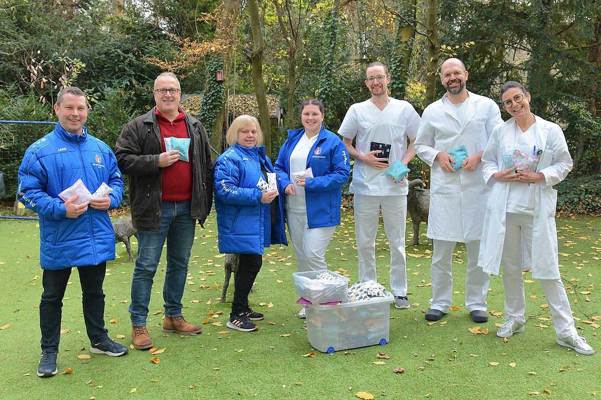 Alle Kinder haben einmal Bauchweh – aus unterschiedlichen Gründen. Um die Schmerzen der jungen Patientinnen und Patienten der Kinder- und Jugendklinik (Direktor: Prof. Dr. Joachim Wölfle) des Uniklinikums Erlangen ein wenig zu lindern und ihnen gleichzeitig etwas Trost zu spenden, übergaben nun Angelika Full, André Hahn, Stefan und Victoria Schwarzmayr von der Karnevalgesellschaft Die Schwabanesen – Schwabach e. V. 150 selbst genähte Kirschkernkissen an PD Dr. André Hörning, Dr. Aline Rückel und Stefan Zimmermann vom Team des Fachbereichs Pädiatrische Gastroenterologie, Hepatologie und Endoskopie in der Kinderklinik.