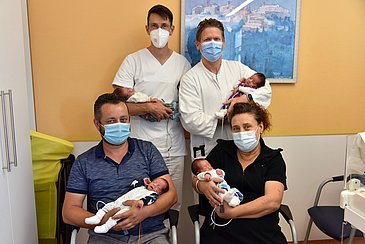 Zur medizinischen Überwachung blieben die Neugeborenen nach der Geburt noch ein paar Wochen auf der Station Neonatologie FK der Kinder- und Jugendklinik (Direktor: Prof. Dr. Joachim Wölfle) des Uniklinikums Erlangen, wo sich Kinderärztinnen und -ärzte, Kinderkrankenpflegerinnen und -pfleger und der Klinische Sozialdienst der Kinderklinik um sie kümmerten. „Vierlinge sind wirklich eine kleine Sensation, die in der beruflichen Laufbahn eines Mediziners wohl höchstens einmal vorkommt“, freute sich Dr. Patrick Morhart, geschäftsführender Oberarzt der Kinderklinik.
