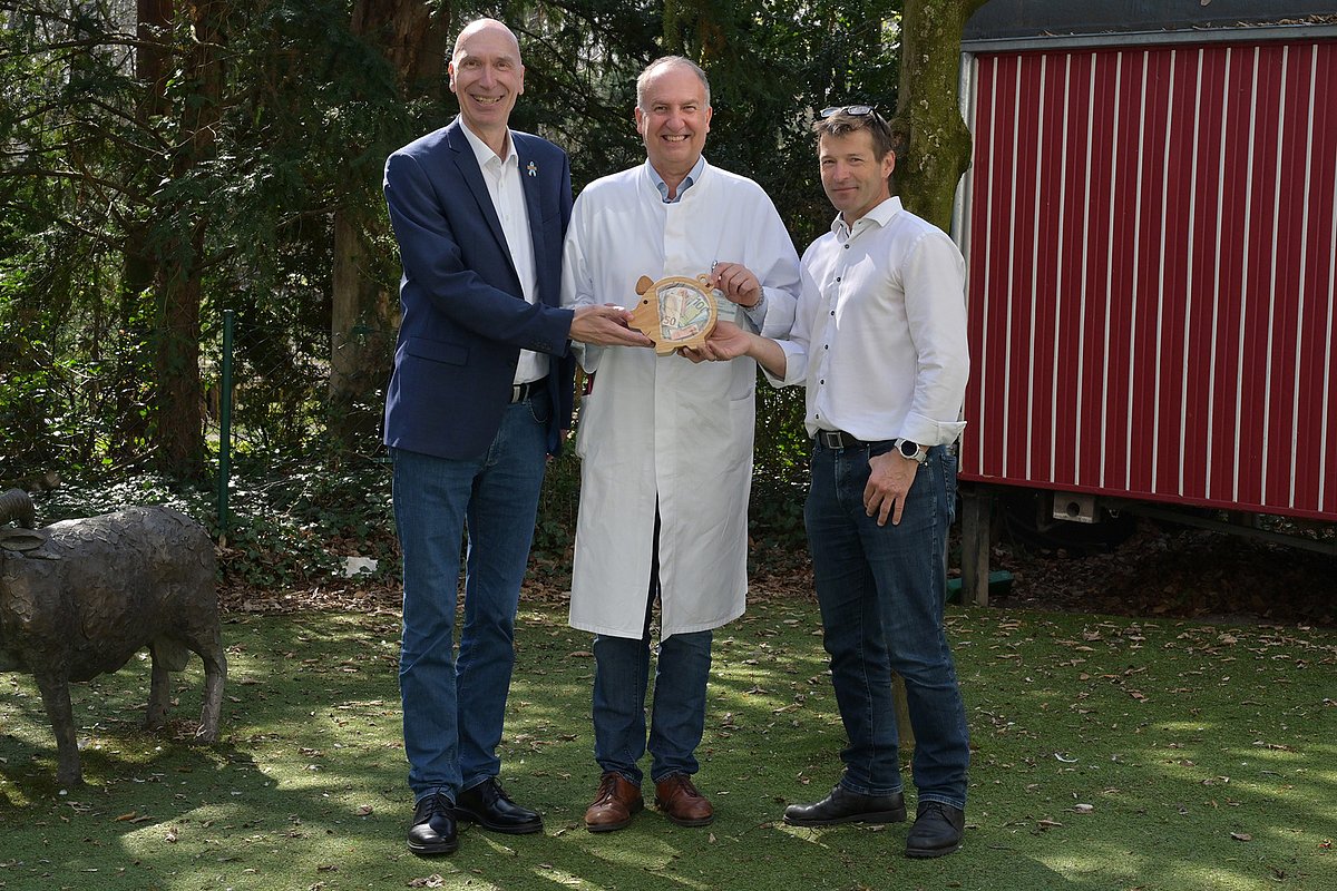 Steffen Polster, Process Architect bei Siemens Healthineers, und sein Kollege Holger Schmidt, Head of Quality bei Siemens Healthineers, sind in der Kinder- und Jugendklinik des Uniklinikums Erlangen längst keine Unbekannten mehr. Nun kamen die beiden zum wiederholten Mal vorbei, um ein gut gefülltes „Spendenschweinchen“ mit 1.300 Euro an Klinikdirektor Prof. Dr. Joachim Wölfle zu überreichen. Das Geld war bei internen Weihnachts- und Neujahrsfeiern zum Jahreswechsel 2025/2026 zugunsten der Erlanger Kinderklinik gesammelt worden und soll nun den jungen Patientinnen und Patienten zugutekommen.