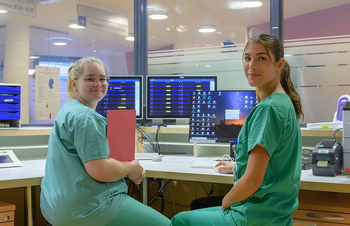 „Wir stehen hier im Vordergrund und laufen nicht einfach so mit“, sagt Maria Grazia Montorro. Sie ist im zweiten Ausbildungsjahr und hat nach eigener Aussage „noch nirgends so viel gelernt wie hier“. Sie unterstreicht: „Mir gefällt besonders gut, dass wir hier nicht nur hin und wieder etwas lernen, sondern jeden Tag. Dass wir ständig mit den Praxisanleitern in Kontakt sind und immer betreut werden.“ Extrem viel habe sie im Bereich der Post-OP-Pflege nach einer Nierentransplantation mitgenommen. „Hier kommt es wegen der Immunsuppression zum Beispiel auf eine gute Mundpflege an, und man muss Wunden intensiv beobachten und richtig interpretieren. Andere Patientinnen und Patienten haben verschiedene Erkrankungen gleichzeitig. Da müssen wir Vitalwerte wie Blutdruck, Puls oder Blutzucker richtig einordnen – also eben immer für den individuellen Fall. Das habe ich hier gelernt.“