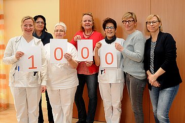 Sie haben Schmuck gebastelt und Marmelade eingekocht, Plätzchen gebacken und Topflappen gehäkelt, Tassen bemalt und Socken gestrickt: in ihrer Freizeit und für einen guten Zweck. Rund 15 Mitarbeiterinnen der Palliativmedizinischen Abteilung (Leiter: Prof. Dr. Christoph Ostgathe) des Universitätsklinikums Erlangen war es ein großes Anliegen, die Zuwendung, die ihre Station regelmäßig erfährt, auch einmal an andere weiterzugeben. Deshalb betrieben die Kolleginnen zwei Tage lang den Ehrenamtsstand der Erlanger Waldweihnacht und sammelten dort Geld für Menschen in Not. "Wir freuen uns sehr, dass wir mit unserem Engagement so viel Erfolg hatten und dass wir nun mit dem ansehnlichen Erlös in Höhe von 1.000 Euro von Gewalt betroffene Frauen und ihre Kinder unterstützen können", sagte Iris Herget, Stationsleitung, bei der Scheckübergabe. Ursula Heintze vom Autonomen Frauenhaus Erlangen weiß auch schon, wie die Spende eingesetzt wird: "Wir haben leider nie genug Geld, um viele Aktionen für Mütter und Kinder anzubieten. Dabei sind gemeinsame Unternehmungen außerhalb des Hauses so wichtig. Das sind immer ganz besondere Erlebnisse."