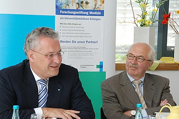 Die neu gegründete "Forschungsstiftung Medizin am Universitätsklinikum Erlangen" hat heute (11.07.08) mit einer Pressekonferenz ihre Arbeit aufgenommen. Ihre Aufgabe ist es, die Bereiche Wissenschaft, Forschung, Ausbildung, Weiterbildung, Öffentliches Gesundheitswesen und Mildtätigkeit zu fördern. Der Vorsitzende des Stiftungsvorstandes, Prof. Dr. Werner G. Daniel, setzte zusammen mit Mitgliedern des Stiftungsrats - Prof. Dr. Bernhard Fleckenstein (Vorsitzender), dem Bayerischen Innenminister Joachim Herrmann und Prof. Dr. Werner Bautz - ein ehrgeiziges Ziel: Innerhalb der nächsten fünf Jahre soll ein Stiftungskapital von 10 Millionen Euro gesammelt werden. Vorbild sind Stiftungen amerikanischer Universitäten.