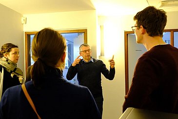 Den Abschluss der Studienreise bildeten am Freitagnachmittag der Besuch einer Vorlesung bei Medizinstudierenden sowie eine Diskussion mit Prof. De Maeseneer am Allgemeinmedizinischen Institut der Universität Gent. Hier standen vor allem die Themen Forschungskooperationen und allgemeinärztliche Aus- und Weiterbildung in Belgien im Vordergrund. Ein gemeinsames Abendessen mit Mitarbeitenden des Allgemeinmedizinischen Instituts in dem früheren Dominikanerkloster „Het Pand“, das sich heute in der Hand der Universität Gent befindet, rundete den Aufenthalt ab.