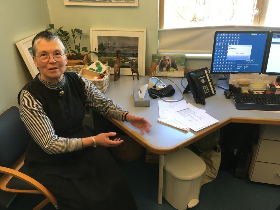 Die Gruppe erhielt zu Beginn eine Einführung in das britische Gesundheitssystem, gefolgt von einer Besichtigung der Caversham Gemeinschaftspraxis, in der Dr. Heath bis zu ihrer Pensionierung gearbeitet hat. Die mit insgesamt dreizehn Ärztinnen und Ärzten sehr große Praxis beeindruckte die TeilnehmerInnen durch die interprofessionelle Aufstellung des Teams (u.a. Apothekerin; care navigator für die Patienten; practice nurses, die eigenständige Routinekonsultationen durchführen; tägliche Gruppenbesprechungen und -fortbildungen) eine hilfreiche Praxisverwaltungssoftware, die weit über deutsche Standards hinausgeht (Qualitätsmanagement, Episodenstruktur, Unterstützung interprofessioneller Zusammenarbeit, papierlose Rezeptübermittlung zur Apotheke etc.) sowie durch innovative Projekte zur Einbeziehung von PatientInnen in gemeinschaftliche Projekte (z.B. urban gardening im Praxisgarten, Bastel- und Nähkurse im Wartezimmer).