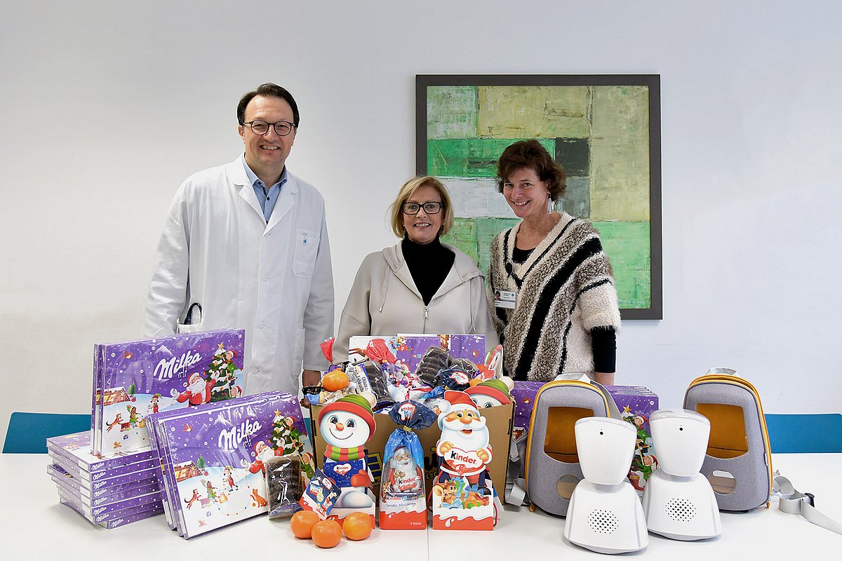 „Für viele Kinder und Jugendliche ist es der größte Wunsch, wieder in die Schule gehen zu können. Mit diesen Avataren möchten wir ihnen ein bisschen Normalität ans Krankenbett bringen“, sagte Petra Waldhauser. Die Selbsthilfegruppe finanziert sich ausschließlich durch Spenden, mit denen sie erkrankte Kinder und ihre Familien unterstützt. Neben der Anschaffung der Avatare übernimmt die Gruppe auch die Wartungskosten. Zusätzlich zu den Telepräsenz-Robotern brachte Petra Waldhauser auch jede Menge Weihnachtsleckereien für die Patientinnen und Patienten der Kinderonkologie mit.