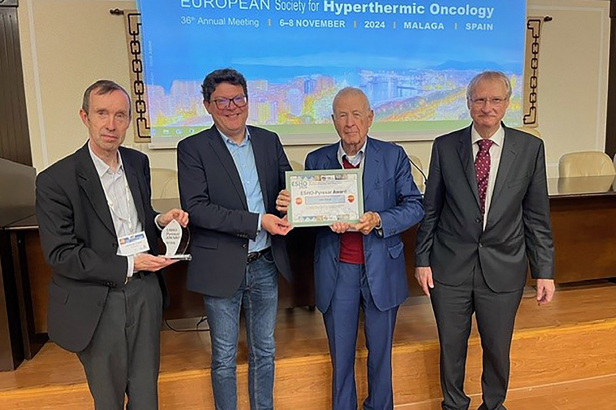 Bei der 36. Jahrestagung der European Society of Hyperthermic Oncology (ESHO) im spanischen Málaga wurde Prof. Dr. Udo Gaipl, Leiter der Translationalen Strahlenbiologie an der Strahlenklinik (Direktor: Prof. Dr. Rainer Fietkau) des Uniklinikums Erlangen, für seine herausragenden Beiträge zu immunogenen Wirkungen der Hyperthermie mit dem ESHO-PYREXAR Award geehrt. Seit 1999 vergibt die ESHO diese renommierte Auszeichnung an Personen in Wissenschaft und Klinik, die sich auf dem Gebiet der Hyperthermie besonders verdient gemacht haben. Zusammen mit seinem Team erforschte Prof. Gaipl die wichtige Rolle immunologischer Veränderungen nach einer lokalen Erwärmung (Hyperthermie) solider Tumoren mit Mikrowellen, insbesondere in Kombination mit ionisierender Strahlung, wie sie in der Strahlentherapie eingesetzt wird.