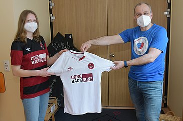 Fußballerinnen sind immer auch gute, ausdauernde Läuferinnen. Das gilt ganz besonders für den 1. FCN Frauen- und Mädchenfußball e. V. Wer könnte die Aktion „Ich lauf um Dein Leben“ zugunsten schwer kranker Kinder, die auf ein Spenderherz warten, also besser unterstützen als die Spielerinnen des Nürnberger Clubs? Fußballerin Hanna Sauer kam jetzt stellvertretend für ihr gesamtes Team bei Prof. Dr. Robert Cesnjevar, Leiter der Kinderherzchirurgischen Abteilung des Universitätsklinikums Erlangen, vorbei, um ihm ein FCN-T-Shirt zu überreichen. Im Gegenzug waren Hanna Sauer und ihre Teamkolleginnen in den vergangenen Wochen in die blauen Laufshirts der Aktion „Ich lauf um Dein Leben“ geschlüpft, um öffentlichkeitswirksam ein Zeichen zu setzen und Spenden für herzkranke Kinder zu sammeln.