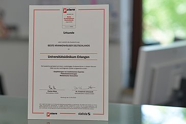 Das Prädikat „sehr gut“ bzw. „häufig empfohlen“ erzielte das Uni-Klinikum Erlangen in den Bereichen Patientensicherheit/Hygiene, Qualitäts-/Beschwerdemanagement sowie beim Patientenurteil. „Häufig empfohlen“ bzw. mit „gut“ bewertet wurden die Zahl des Pflegepersonals und die Qualitätssicherung mit Routinedaten; auch das allgemeine Fachurteil für das Uni-Klinikum Erlangen fiel „gut“ aus. Alle Ergebnisse sind nachzulesen in der stern-Ausgabe Nr. 25 vom 10. Juni 2020.