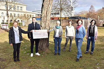 Mehr als 22 Kilometer durchschnittlich – diese Strecke legte jede und jeder Teilnehmende beim zweiten „digitalen“ Dormitzer Benefizlauf im vergangenen Jahr zurück. Pro gelaufenem Kilometer spendeten die etwa 60 Hobbyläuferinnen und -läufer einen Euro. So sammelten sie insgesamt 1.326,43 Euro, die nun dem Bunten Kreis Erlangen zugutekommen. Das Nachsorgeprogramm wird von der Kinder- und Jugendklinik (Direktor: Prof. Dr. Joachim Wölfle) des Universitätsklinikums Erlangen angeboten und unterstützt Familien mit frühgeborenen und kranken Kindern nach einem längeren Klinikaufenthalt. Bei der offiziellen Spendenübergabe überreichten Dominik Wuttke, 2. Vorstand des FC Dormitz, und Eva Brönner, Frauenbeauftragte des Fußballclubs, den Scheck an die Vertreterinnen des Bunten Kreis Erlangen – Pflegedienstleitung der Kinderklinik und der Frauenklinik Helga Bieberstein, die Case Managerinnen Dagmar Kußberger und Ingrun Löwe sowie Gesundheits- und Kinderkrankenpflegerin Petra Oehrlein.