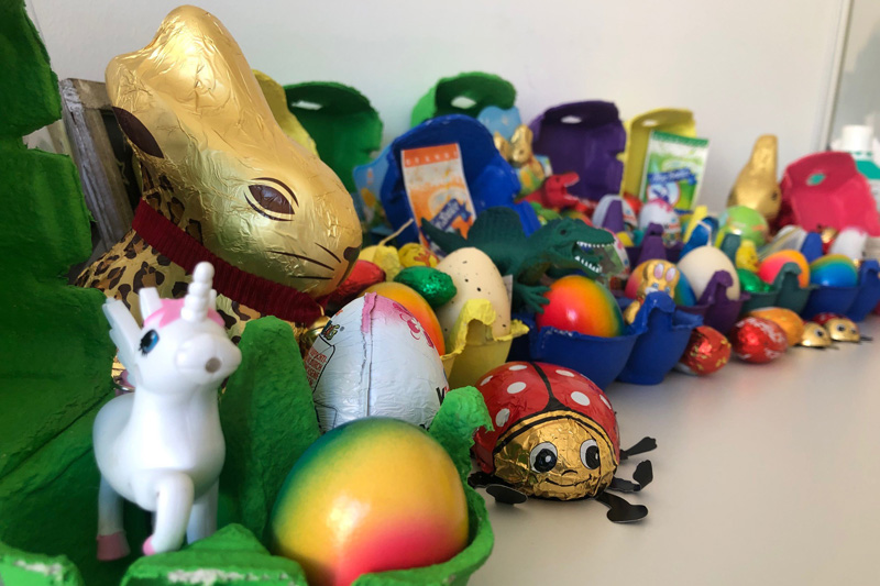 Insgesamt 40 schwer kranke Kinder und ihre Familien besuchen Michelle Dotzauer und ihr Team derzeit – so viele wie noch nie, seit das Erlanger Kinderpalliativteam vor zehn Jahren seine Arbeit aufgenommen hat. „Manche Patienten besuchen wir zwei- oder sogar dreimal pro Woche“, erklärt Dr. Chara Gravou-Apostolatou, Leiterin des Kinderpalliativteams. „Gerade jetzt haben die Familien neben den medizinischen Themen auch einen erhöhten psychosozialen Bedarf durch die Isolation und alle damit verbundenen Belastungen, wie zum Beispiel Ausfälle beim häuslichen Pflegedienst in den Familien.“ Weil die Geschwisterkinder aufgrund der vorgegebenen Kontaktbeschränkungen zurzeit nicht so eng wie sonst betreut werden können, schickt ihnen das Kinderpalliativteam regelmäßig handgefertigte Briefe, Bastelmaterial und kreative Anregungen. Als Osterüberraschung bekommen alle Kinder und Geschwister derzeit insgesamt 60 selbst gebastelte bunte Osternester sowie viele kleine Geschenke und Schokoladenhasen persönlich überbracht.