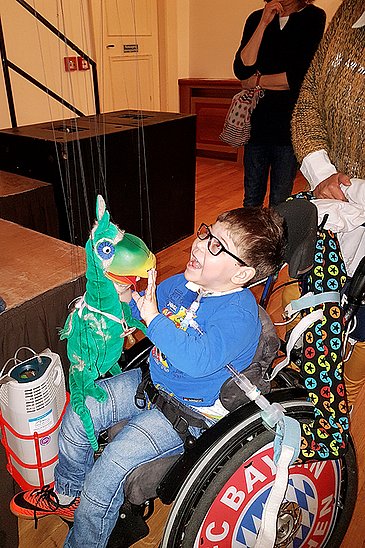 "Urmels große Reise" führte das kleine grüne Fabelwesen zum ersten Mal überhaupt nach Erlangen – und dann auch noch vor ein exklusives Publikum! Im Jubiläumsjahr des 25. Toy Run hat der Verein "Toy Run – Träume für kranke Kinder Erlangen" zwei Aufführungen der Augsburger Puppenkiste eigens für die ambulanten Patienten der Kinder- und Jugendklinik (Direktor: Prof. Dr. Dr. h. c. Wolfgang Rascher) des Universitätsklinikums Erlangen organisiert. Beide Vorstellungen waren mit je 160 kleinen und großen Gästen komplett ausgebucht. "Es war fantastisch!", freut sich Marion Müller, Leitende Erzieherin der Kinderklinik und 1. Vorsitzende des Toy Run e. V. "Mit dem Gastspiel des berühmten Marionettentheaters wollten wir die kranken Kinder und Jugendlichen, aber auch ihre Geschwister und Eltern, ein wenig vom Klinikalltag ablenken und sie mit auf die Reise ins Reich der Fantasie nehmen."