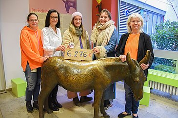 Vincenz und Xaver Schiller vom „Entla’s Bräu Erlangen“ haben 1.100 Liter Weizen-Bockbier mit dem Namen „Justus“ gebraut, es in Flaschen abgefüllt und verkauft. Das Besondere an der Aktion: Die Käuferinnen und Käufer konnten den Preis für ihr Sechser-Tragerl selbst festlegen und unterstützten mit ihrem Betrag unmittelbar die Kinder- und Jugendklinik (Direktor: Prof. Dr. Joachim Wölfle) des Uniklinikums Erlangen. Insgesamt kamen seit dem Verkaufsstart am 16. Dezember 2023 6.276 Euro zusammen, die die Partnerinnen der Brauleute jetzt an Prof. Dr. Regina Trollmann, Leiterin der Neuropädiatrie und Sprecherin des Sozialpädiatrischen Zentrums der Kinderklinik, und Marion Müller, leitende Erzieherin der Kinderklinik, übergaben. „Wir freuen uns wirklich sehr über die großzügige Spende. Mit dem Geld werden wir Geschenke für die von uns behandelten Kinder und Jugendlichen kaufen und so für Abwechslung vom Klinikaufenthalt sorgen“, so Marion Müller bei der Scheckübergabe.