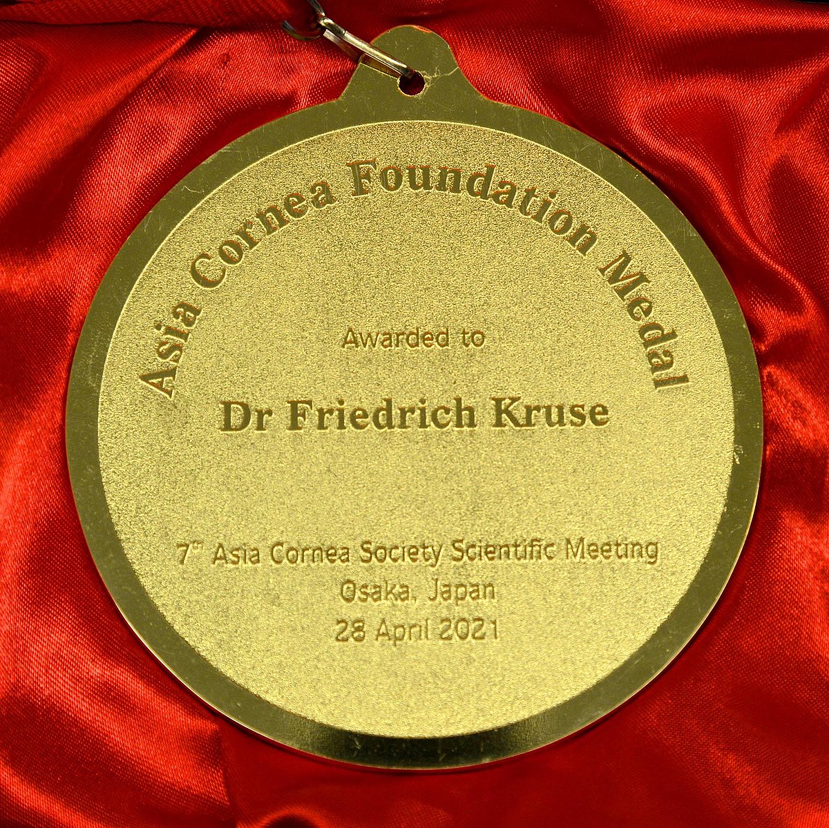 Verleihung der Asia Cornea Foundation (ACF) Medaille an Prof. Dr. Friedrich E. Kruse.