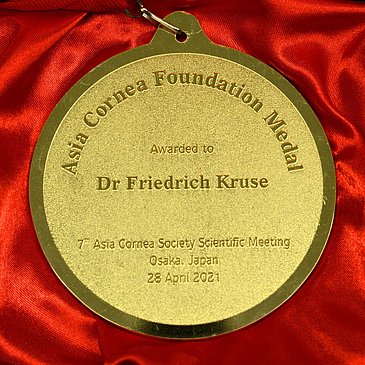 Prof. Kruse ist ein weltweit führender, international anerkannter Experte auf dem Gebiet der Hornhauttransplantation und der Therapie von Erkrankungen der Augenoberfläche. Im Rahmen seiner wissenschaftlichen Forschung hat er bislang mehr als 250 wissenschaftliche Publikationen verfasst. Die ACF-Medaille ist die höchste Auszeichnung der Asia Cornea Society und wurde Prof. Kruse im Rahmen des diesjährigen Wissenschaftskongresses der Asia Cornea Society, der in diesem Jahr virtuell ausgetragen wurde, verliehen. In seinem Festvortrag berichtete Prof. Dr. Kruse über neueste Ergebnisse im Bereich der limbalen Stammzellforschung, die die Grundlage zu innovativen Therapieansätzen bei Patienten mit Hornhauterkrankungen aufgrund einer Limbusstammzellinsuffizienz bilden.