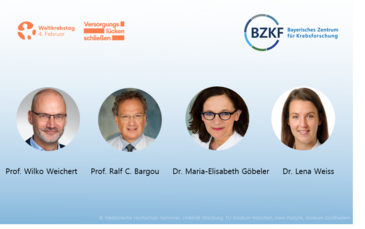 Versorgungslücken entstehen durch die großen Ungleichheiten in der Krebsversorgung weltweit. Das Bayerische Zentrum für Krebsforschung (BZKF) setzt sich dafür ein, dass Krebspatientinnen und -patienten in Bayern bestmöglich behandelt und betreut werden. Seit Kurzem bietet das BZKF die ersten bayernweit übergreifenden molekularen Tumorboards zur Auswahl der bestmöglichen Krebstherapie und Studienempfehlung für Krebspatientinnen und Krebspatienten an. Die Vernetzung der bayerischen Universitätsklinika in Augsburg, Erlangen, den zwei Standorten in München, Regensburg und Würzburg ermöglicht eine enge klinikübergreifende Zusammenarbeit und eröffnet mehr bayerischen Patientinnen und Patienten auch in der Fläche den Zugang zu den neuesten innovativen Krebstherapien und klinischen Studien. Im Rahmen der MOLTB- und ECTU-Boards des BZKF, in denen Expertinnen und Experten der unterschiedlichsten Fachrichtungen bayernweit Krebspatientinnen und Krebspatienten auf individueller Basis diskutieren, werden personalisierte Behandlungsmöglichkeiten, für den ein solches Vorgehen sinnvoll erscheint, geprüft und erörtert.