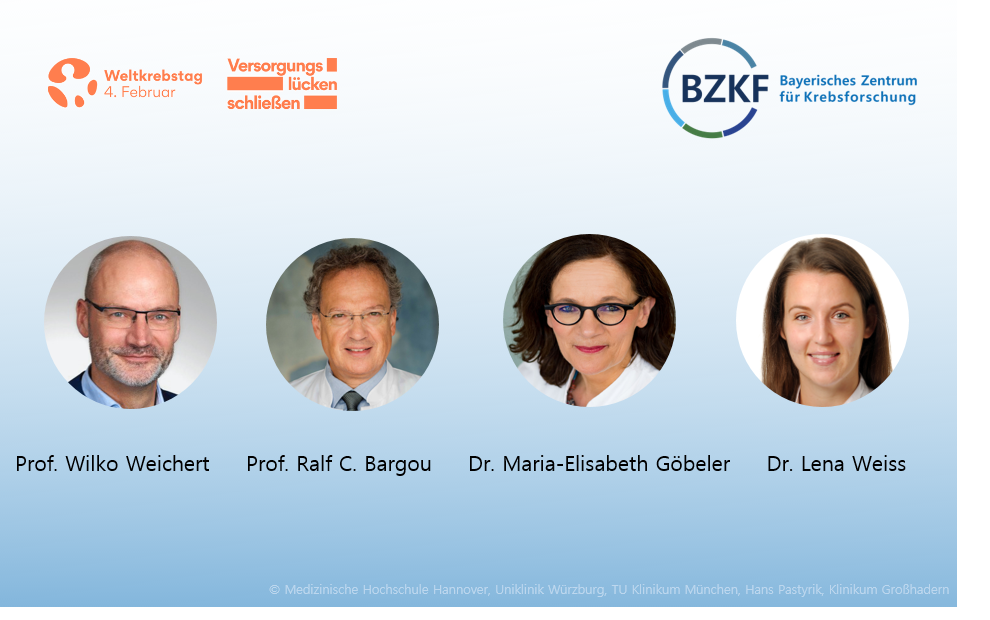 Versorgungslücken entstehen durch die großen Ungleichheiten in der Krebsversorgung weltweit. Das Bayerische Zentrum für Krebsforschung (BZKF) setzt sich dafür ein, dass Krebspatientinnen und -patienten in Bayern bestmöglich behandelt und betreut werden. Seit Kurzem bietet das BZKF die ersten bayernweit übergreifenden molekularen Tumorboards zur Auswahl der bestmöglichen Krebstherapie und Studienempfehlung für Krebspatientinnen und Krebspatienten an. Die Vernetzung der bayerischen Universitätsklinika in Augsburg, Erlangen, den zwei Standorten in München, Regensburg und Würzburg ermöglicht eine enge klinikübergreifende Zusammenarbeit und eröffnet mehr bayerischen Patientinnen und Patienten auch in der Fläche den Zugang zu den neuesten innovativen Krebstherapien und klinischen Studien. Im Rahmen der MOLTB- und ECTU-Boards des BZKF, in denen Expertinnen und Experten der unterschiedlichsten Fachrichtungen bayernweit Krebspatientinnen und Krebspatienten auf individueller Basis diskutieren, werden personalisierte Behandlungsmöglichkeiten, für den ein solches Vorgehen sinnvoll erscheint, geprüft und erörtert.