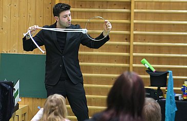 Sebastian Lehmeier kam selbst als Kind zur Zauberei und gibt heute sein Können in Workshops an Nachwuchsmagierinnen und -magier weiter. Auch bei seiner speziell konzipierten Vorführung in der Kinderklinik des Uniklinikums Erlangen zog er mit Zauberstab, bunten Tüchern, verschwindenden Würfeln, Bällen und Co. die jungen Zuschauerinnen und Zuschauer in seinen Bann. Die Kinder durften Sebastian Lehmeier aber nicht nur zusehen, sondern ihm auch assistieren und sogar selbst zu Zauberinnen und Zaubern werden. Finanziert und somit ermöglicht wurde die Vorführung durch Herzpflaster e. V. Der 2013 gegründete Verein möchte Kindern mit Herzerkrankungen und deren Eltern wieder mehr Lebensfreude schenken und für sie lange Klinikaufenthalte möglichst kurzweilig gestalten.