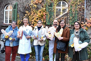 „Wir bedanken uns sehr herzlich für Ihre liebevollen Handarbeiten“, sagte Dr. Hack. „In unserem Brustzentrum ist der Bedarf an Herzkissen groß. Wir freuen uns daher sehr über eine weitere Gruppe engagierter Näherinnen, die uns und unsere Patientinnen unterstützt“, ergänzte Mario Witter.