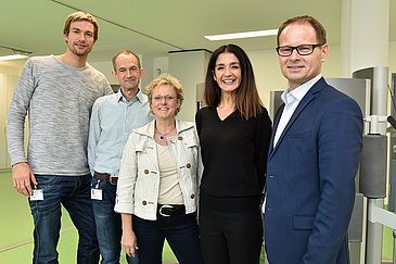 Noch vor wenigen Jahren empfahlen Mediziner das Schonen und Ausruhen während einer körperlich fordernden Behandlung, wie etwa der Chemotherapie. Heute ist die Wissenschaft zu einer ganz anderen Erkenntnis gelangt: Bewegung und Aktivierung sind die Zauberworte, die die Patienten nicht nur kräftiger und belastbarer machen, sondern auch den Krankheitsverlauf nachweislich günstig beeinflussen. Auf diesem Konzept fußt deshalb auch das Hector-Center für Ernährung, Bewegung und Sport am Uni-Klinikum Erlangen. Bei ihrem Besuch lernten Susanne Lender-Cassens und Ulrich Klement, dass Sport bei Krankheit viel mehr gemeint ist als leichte Bewegungsübungen, wie Prof. Zopf im neu eingerichteten Trainingsraum verdeutlichte: "Wir setzen auf innovative Trainingsmethoden, die auch begleitend zu einer Krebstherapie oder im Rahmen der Adipositasbehandlung eingesetzt werden können." Im Sommer 2017 eröffnet, hat sich das Hector-Center innerhalb des Uni-Klinikums Erlangen bereits bestens etabliert und das interdisziplinäre Team aus Ärzten, Ernährungs- und Sportwissenschaftlern, Diätassistenten und Physiotherapeuten betreut viele unterschiedliche Patienten aus den onkologischen, chirurgischen und internistischen Bereichen.