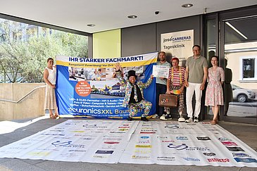 Als Marcel Wenzlaff Anfang 2024 in und um Bayreuth zu einer Spendenaktion für kranke Kinder und Jugendliche aufrief, stellten mehr als 80 Unternehmen der Region Sachspenden aller Art zur Verfügung, die der Initiator schließlich an einem Glücksrad im Rotmain-Center Bayreuth verloste. Die Aktion stieß auf breite Resonanz: Zahlreiche Besucherinnen und Besucher des Einkaufszentrums nutzten die Gelegenheit, für einen selbst gewählten Spendenbetrag am Glücksrad zu drehen. Schließlich kam eine Summe in Höhe von 15.000 Euro zusammen, die die Bayreuther Brauerei Maisel noch verdoppelte. Während 20.000 Euro davon nun für ein neues Spielzimmer an das Klinikum Bayreuth gehen, kommen die restlichen 10.000 Euro der Kinderonkologie (Leiter: Prof. Dr. Markus Metzler) des Uniklinikums Erlangen zugute. Den Spendenscheck nahmen Prof. Metzler und Jelena Dzalilova, Assistentin der Kinderonkologie, dankend entgegen.