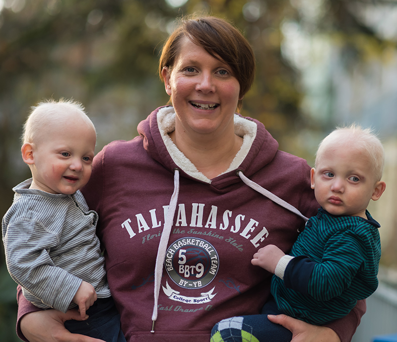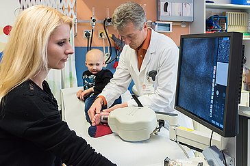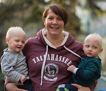 Dann wurde Corinna T. mit Zwillingen schwanger. Die traurige Gewissheit: Auch sie würden krank sein. "Es tut uns leid, wir haben nur zwei Zahnanlagen gesehen", sagte der Frauenarzt nach dem Feinultraschall. Über eine Selbsthilfegruppe stand das Paar bereits in Kontakt mit den Experten für Ektodermale Dysplasie am Uni-Klinikum Erlangen. Um den Zwillingen Linus und Maarten ein besseres Leben zu ermöglichen, entschlossen sich Corinna und Tobias T. zum weltweit ersten Heilversuch im Mutterleib. "Wir hatten nichts zu verlieren. Irgendwer muss ja Vorreiter sein", sagt Corinna T. Die Behandlung wurde im Februar 2016 von Prof. Dr. Holm Schneider, Oberarzt der Kinderklinik und Sprecher des Zentrums für Ektodermale Dysplasien Erlangen, und Oberarzt PD Dr. Florian Faschingbauer von der Frauenklinik (Direktor: Prof. Dr. Matthias W. Beckmann) des Uni-Klinikums Erlangen durchgeführt.