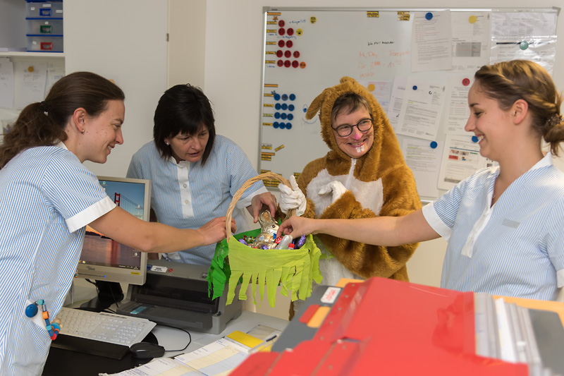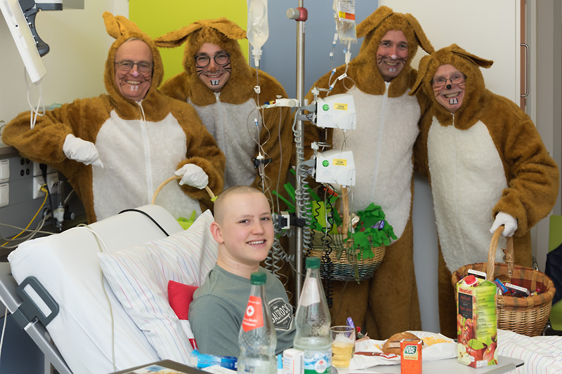 Pünktlich vor Ostern besuchten fünf Osterhasen die jungen Patienten der Kinderklinik