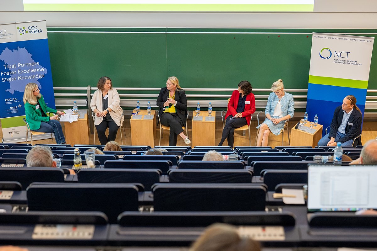 Neben der Vorstellung der einzelnen WERA Arbeitsgruppen, Studieninfrastrukturen und von Best-Practice-Beispielen war ein weiteres elementares Thema des Netzwerktreffens die Patientenbeteiligung, der ein Impulsvortrag mit anschließender Podiumsdiskussion gewidmet war. „Gute Versorgung beginnt bei guter Forschung. Was gute Forschung ist, entscheiden auch Patientinnen und Patienten“, sagte Alexia Parsons, Leiterin der Projektgruppe „Nationale Dekade gegen Krebs“ des BMBF. Ihr Ziel: Patientinnen und Patienten in allen Phasen der onkologischen Forschung zu beteiligen.