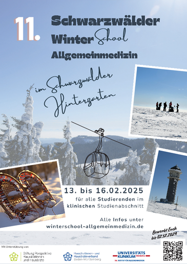 im Februar 2025 lädt die Uniklinik Freiburg zum elften Mal Studierende aus dem ganzen Bundesgebiet zur „Winterschool Allgemeinmedizin“ in den wunderschönen winterlichen Schwarzwald ein.
