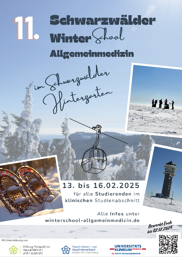im Februar 2025 lädt die Uniklinik Freiburg zum elften Mal Studierende aus dem ganzen Bundesgebiet zur „Winterschool Allgemeinmedizin“ in den wunderschönen winterlichen Schwarzwald ein.