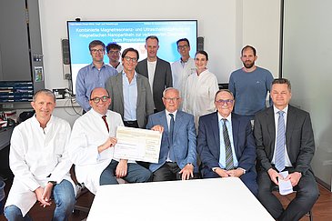 Prostatakrebs rechtzeitig erkennen und dadurch Heilungschancen deutlich verbessern – dieses Ziel hat sich die Sektion für Experimentelle Onkologie und Nanomedizin (SEON, Leiter: Prof. Dr. Christoph Alexiou) der Hals-Nasen-Ohren-Klinik – Kopf- und Halschirurgie (Direktorin: Prof. Dr. Sarina Müller) des Uniklinikums Erlangen gemeinsam mit dem Radiologischen Institut (Direktor: Prof. Dr. Michael Uder) des Uniklinikums Erlangen und der Klinik für Urologie des Klinikums Fürth (Chefarzt: Prof. Dr. Andreas Blana) gesetzt. Deshalb untersuchen Wissenschaftlerinnen und Wissenschaftler der drei Einrichtungen in ihrem aktuellen Kooperationsprojekt, inwiefern sich superparamagnetische Eisenoxid-Nanopartikel (SPIONs) als Kontrastmittel für die diagnostische Bildgebung von Prostatakarzinomen mittels Magnetresonanztomografie (MRT) und Ultraschall eignen. Die Fürther Manfred-Roth-Stiftung unterstützt das vielversprechende Forschungsvorhaben nun mit einer großzügigen Spende in Höhe von 48.000 Euro an die Forschungsstiftung Medizin am Uniklinikum Erlangen. Im Rahmen des Matching-Funds-Programms des Uniklinikums Erlangen wird die Summe auf insgesamt 60.480 Euro aufgestockt.
