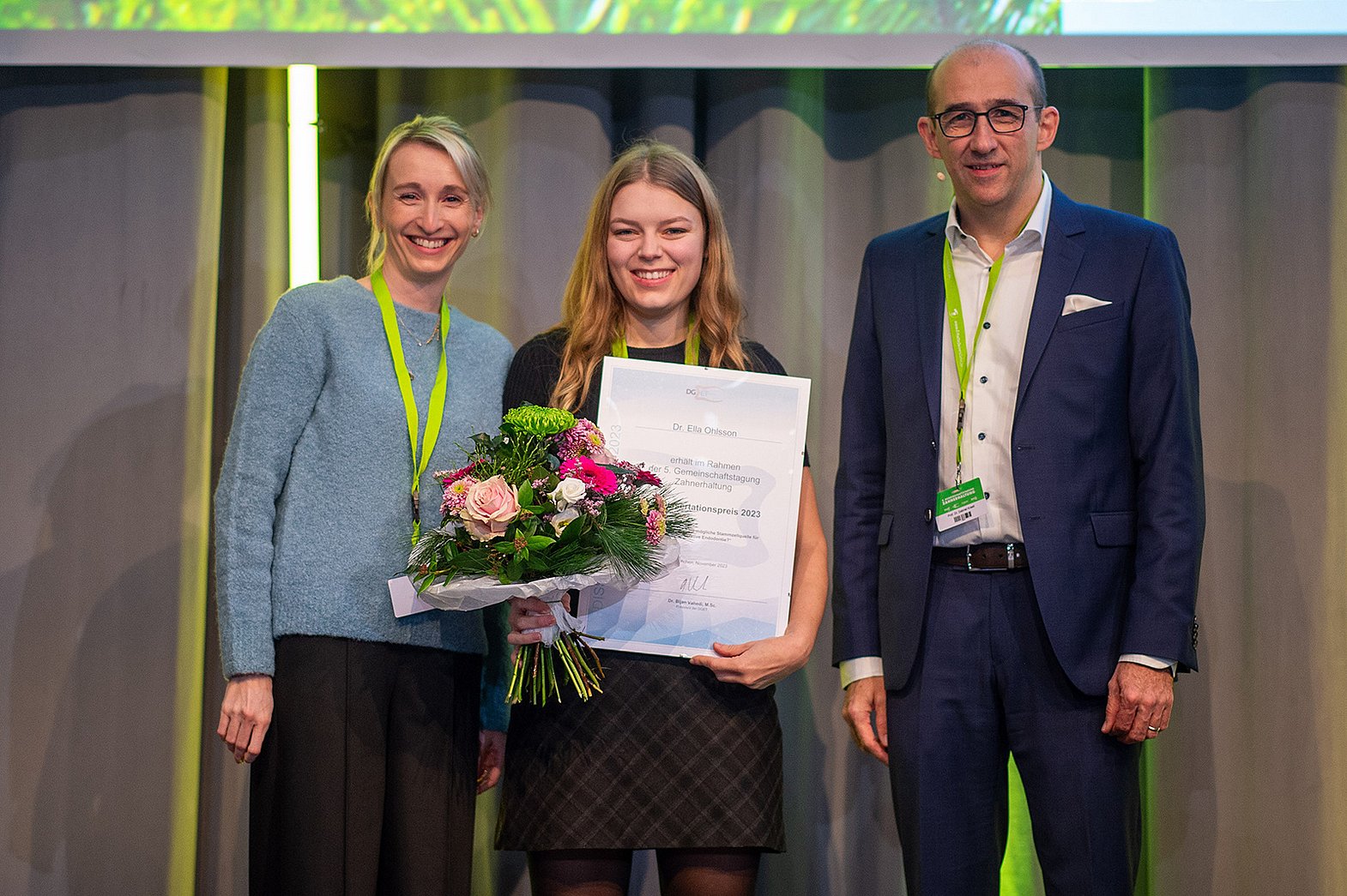 Dr. Ella Ohlsson wurde auf der Jahrestagung der Deutschen Gesellschaft für Endodontologie und zahnärztliche Traumatologie (DGET) mit dem Dissertationspreis ausgezeichnet.
