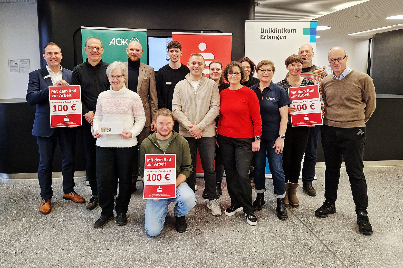 Mitarbeitende des Uniklinikums Erlangen sammelten bei der Aktion „Mit dem Rad zur Arbeit“ der AOK 16.722 Kilometer – eine von ihnen wurde nun ausgezeichnet