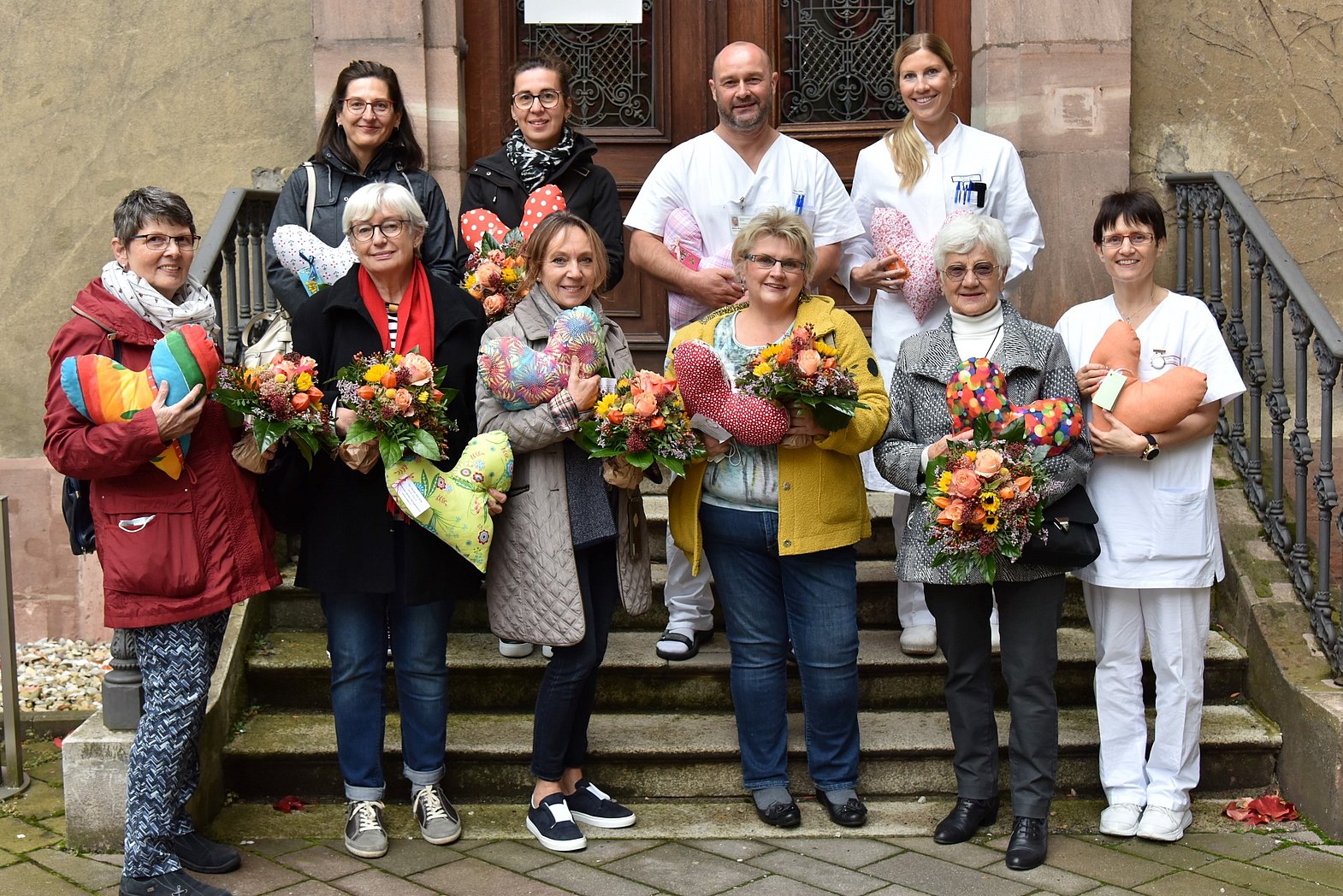 Ehrenamtliche Unterstützerinnen der Frauenklinik überreichten 130 selbst genähte Herzkissen für Brustkrebspatientinnen