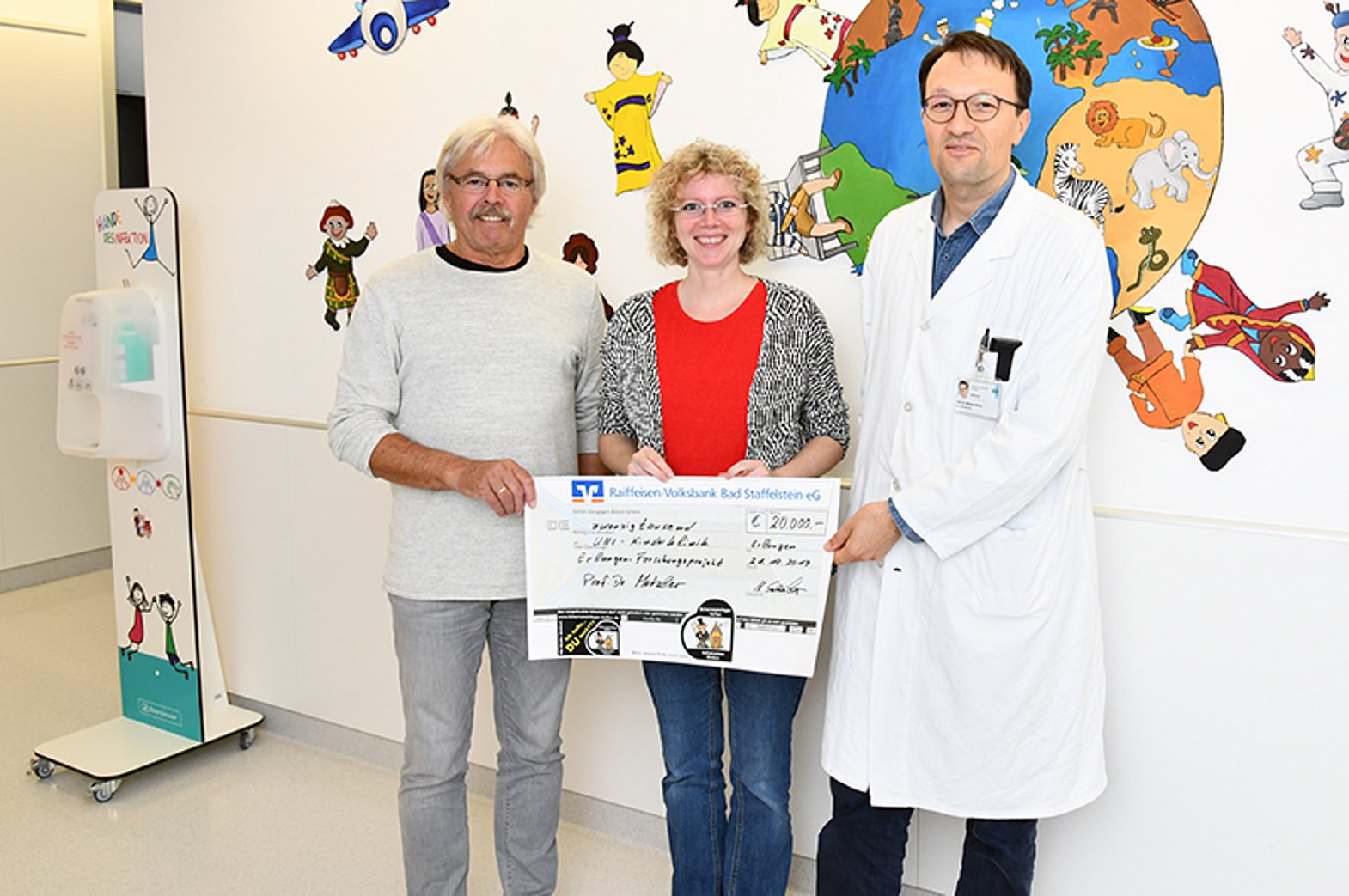Gleich drei Spendenschecks im Gesamtwert von 2.400 Euro brachte jetzt der Gesangverein Gaiganz mit nach Erlangen. Sie kommen der Forschung in der pädiatrischen Onkologie an der Kinder- und Jugendklinik (Direktor: Prof. Dr. Joachim…