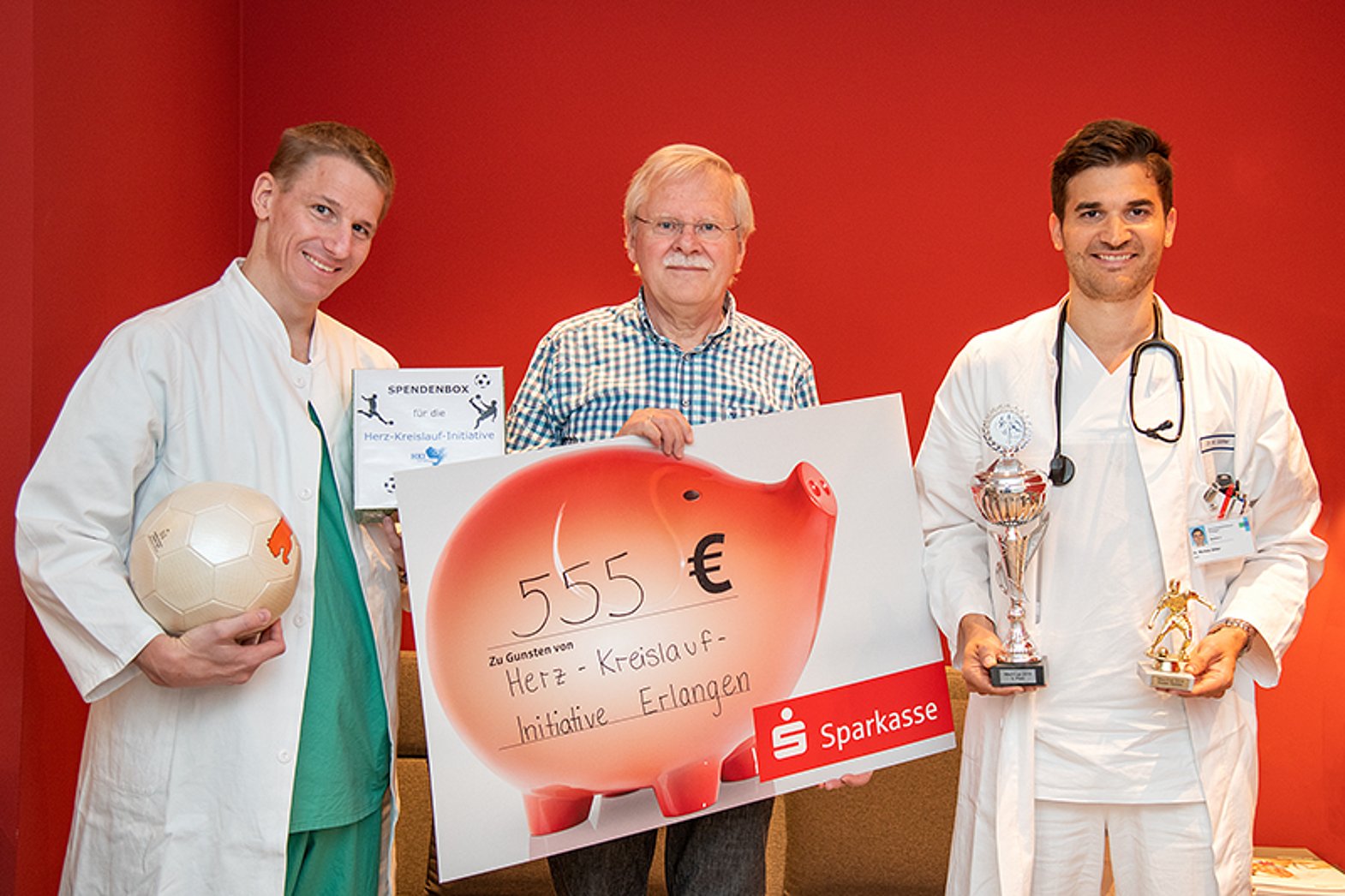 Kardiologen belegen Treppchen bei Fußballturnier und spenden 555 Euro an die Herz-Kreislauf-Initiative Erlangen