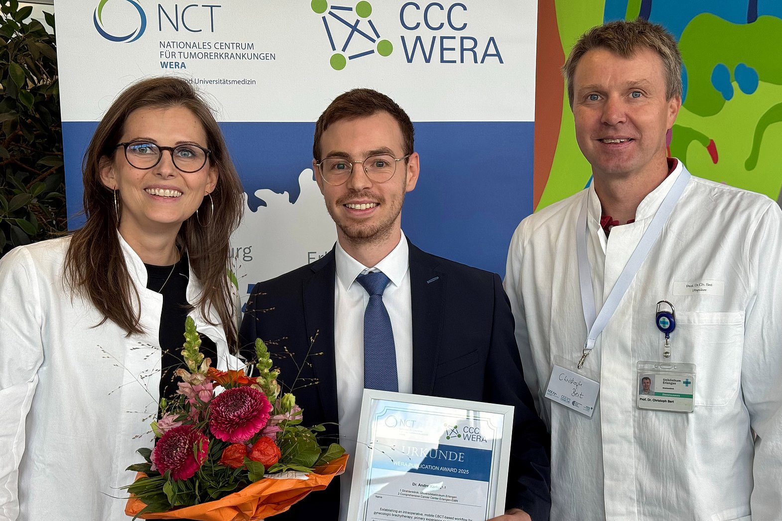 Dr. Andre Karius, Postdoc und Medizinphysik-Experte in der Strahlenklinik (Direktorin: Prof. Dr. Stefanie Corradini) des Uniklinikums Erlangen, erhielt im Rahmen des Netzwerktreffens von CCC WERA und NCT WERA den WERA Publication…