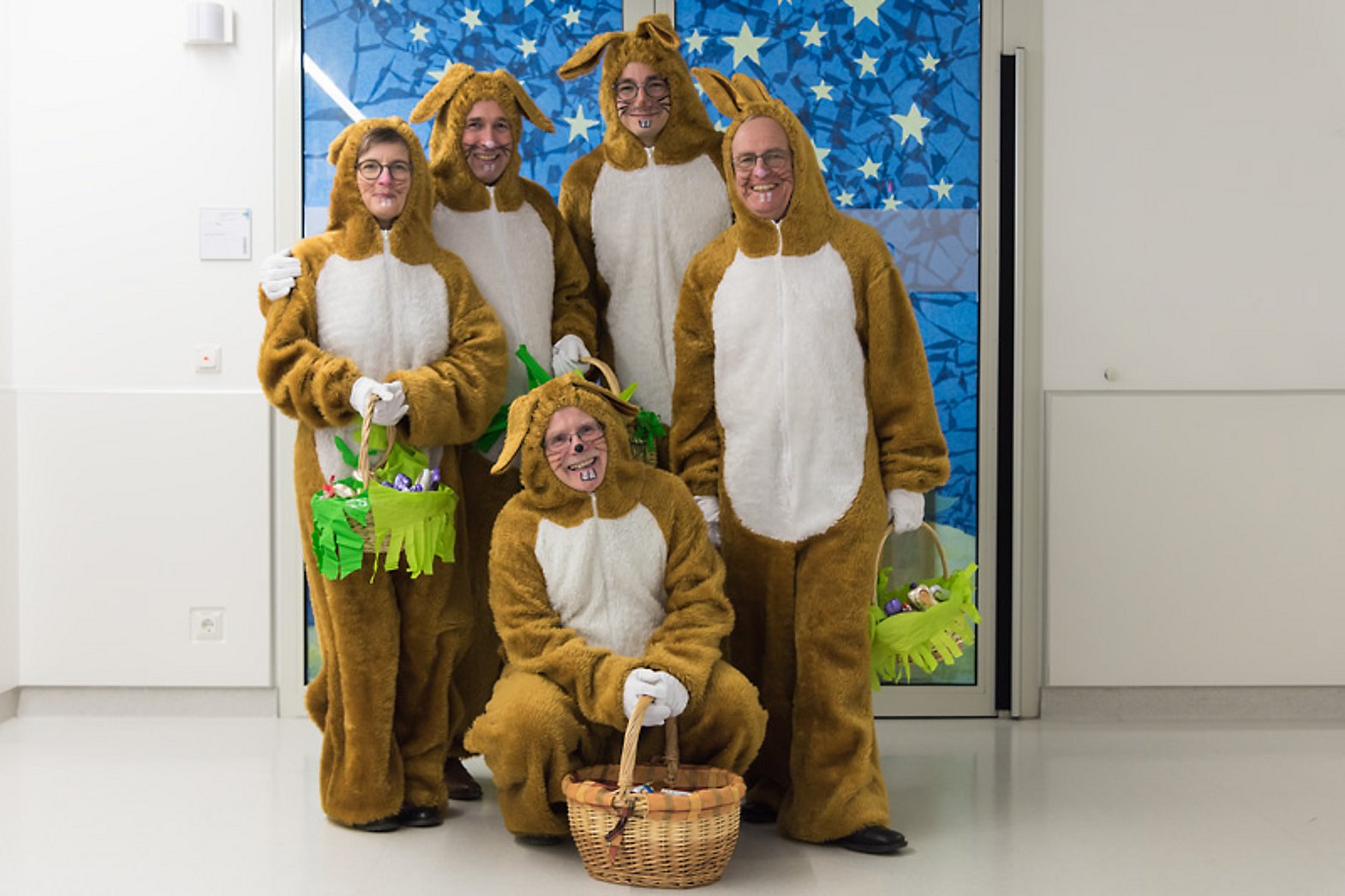 Pünktlich vor Ostern besuchten fünf Osterhasen die jungen Patienten der Kinderklinik