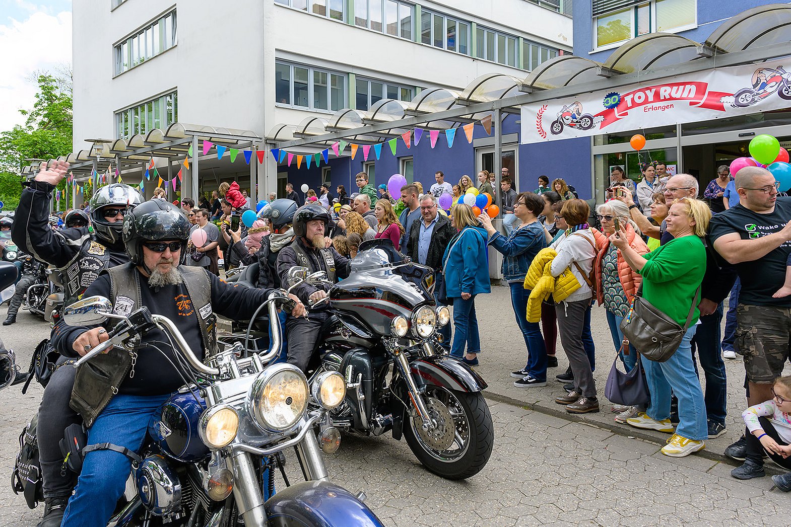 Bikerinnen und Biker versammeln sich am Samstag, 3. Mai 2025, zum 31. Erlanger Toy Run