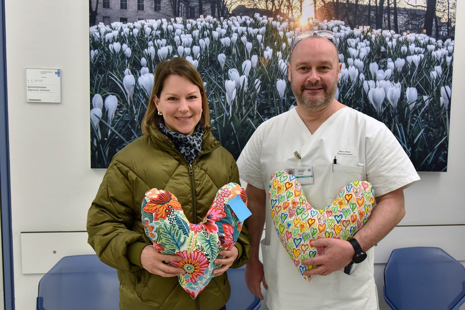 Carolin Leonhard übergab selbst genähte Herzkissen für Erlanger Brustkrebspatientinnen