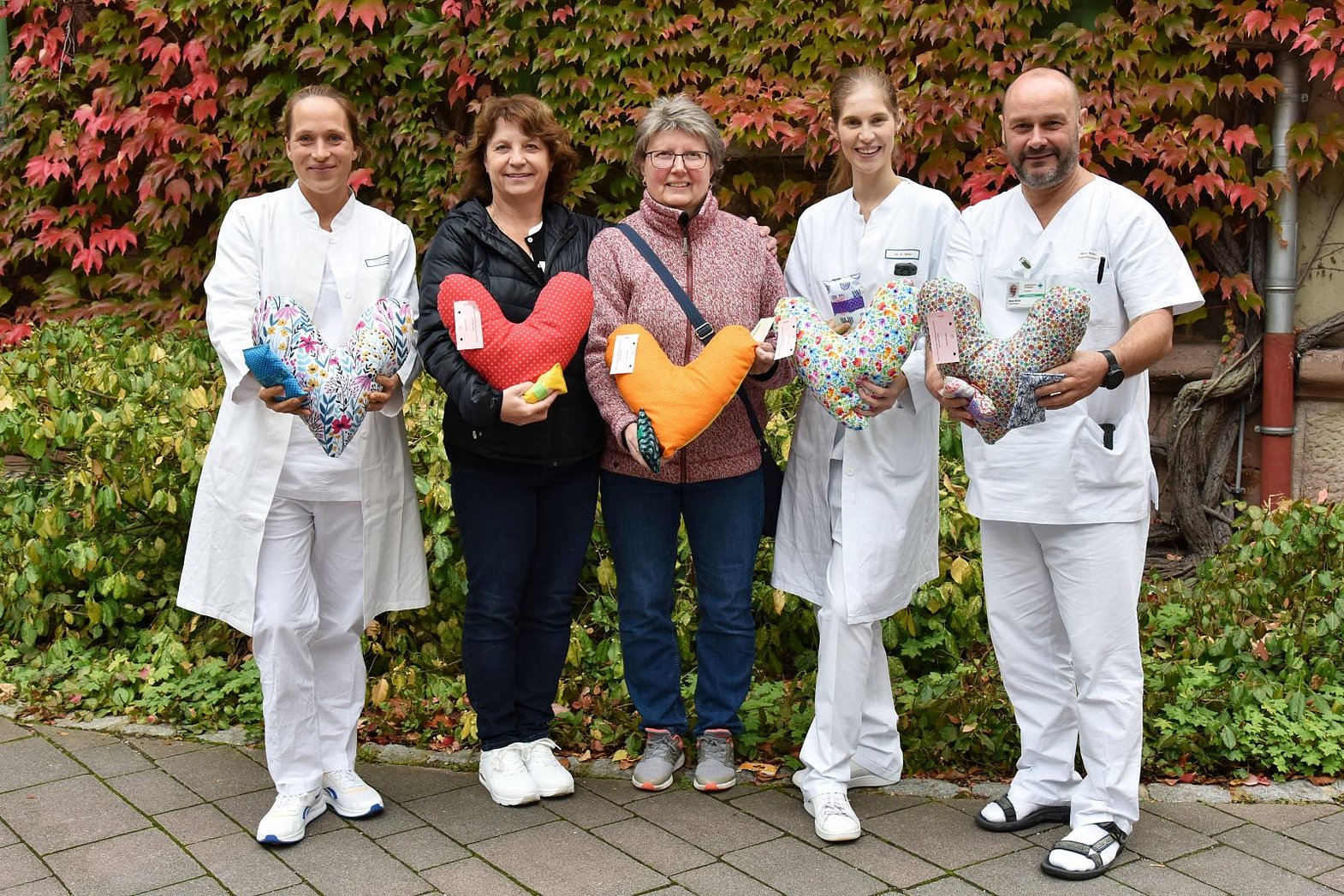 Ehrenamtliche Unterstützerinnen der Frauenklinik überreichten 900 Kissen für Brustkrebspatientinnen